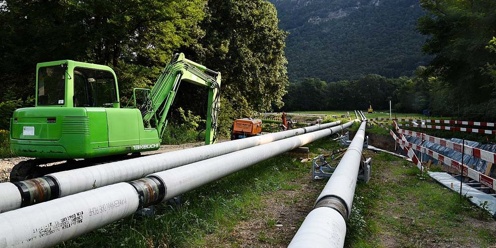 Il lavoro eseguito è una prima svizzera (per lunghezza) svolta con la tecnica della perforazione teleguidata. La lunghezza del foro è pari a oltre 750 metri su una realizzazione complessiva di 1200 metri. L’ampiezza del progetto ha richiesto un’importante pianificazione ed attrezzature mai impiegate per questo genere di lavoro che è stato terminato in ca. 5 mesi.